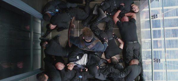 Was an der Szene besonders ist: Höflich wie immer, gibt der Captain den SHIELD-Agenten die Möglichkeit aus dem Aufzug zu verschwinden bevor die Situation böse endet.