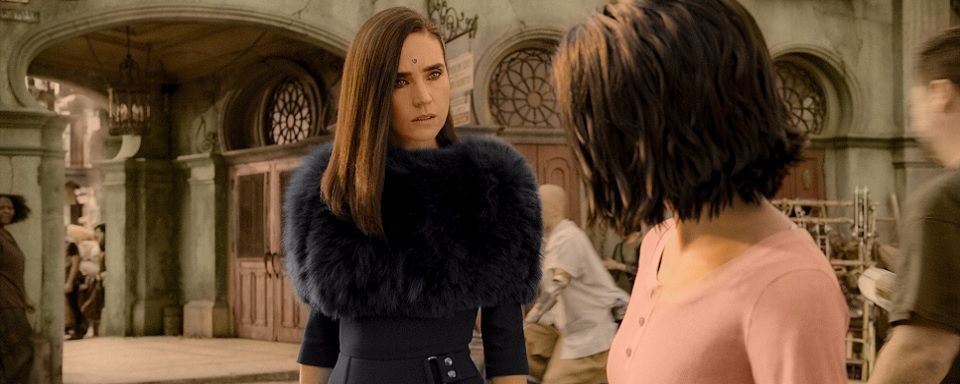 Auch hinsichtlich der anderen Figuren und deren Beziehungen untereinander haben sich Cameron und Rodriguez dazu entschlossen, sich sowohl am Manga als auch am Anime zu bedienen und dabei nicht nur das Beste aus beiden Welten zu vereinen, sondern auch neue Elemente einzustreuen. Dr. Ido hat im Film eine viel innigere Beziehung zu Alita als noch in „Gunnm“, was wohl nicht zuletzt an der erwähnten Katze liegt, die nun zur Tochter wird. Es ist deswegen auch wenig überraschend, dass Chiren (Jennifer Connelly), die Mutter seines verstorbenen Kindes, im Original gar nicht erst vor kommt. Ihre Figur wurde erst mit dem Anime eingeführt und für den 2019er-Film nahezu genauso daraus übernommen. Ihre erste große Liebe Hugo (Keean Johnson) trifft Alita in der Vorlage übrigens nicht beim Erkunden von Iron Citys Straßen, sondern während eines Kampfes mit einem Werwolf.
