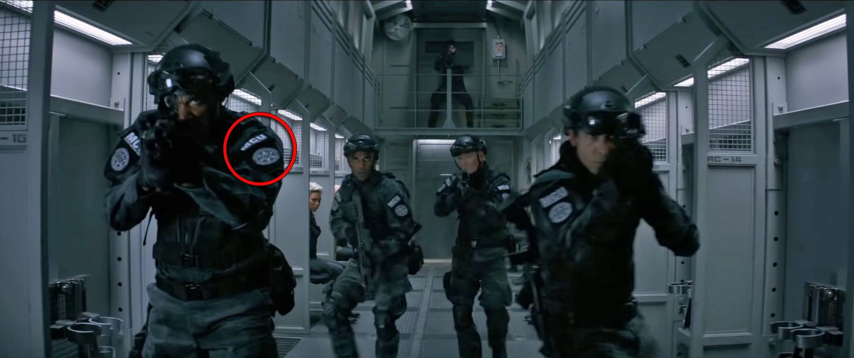Wie sich den Abzeichen der Soldaten entnehmen lässt, arbeiten diese für eine gewisse M.C.U. oder MCU. Es handelt sich also um dieselbe Abkürzung wie die für das Marvel Cinematic Universe, nur dass diese hier wohl für Mutant Control Unit (Mutanten-Kontroll-Einheit), Mutant Containment Unit (Mutanten-Eindämmungs-Einheit) oder einen ähnlichen Namen steht.