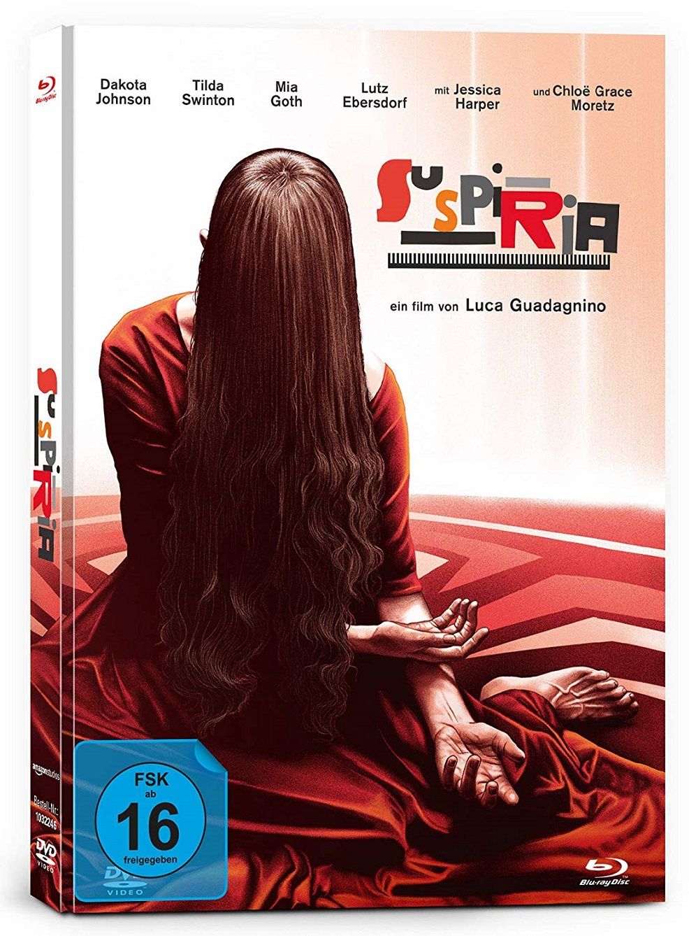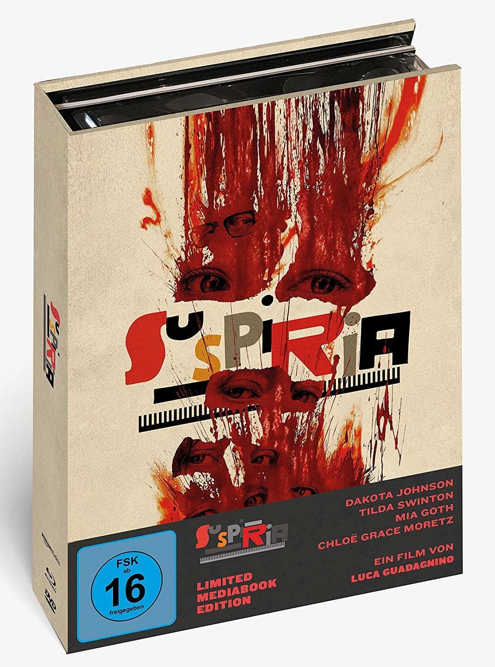 Wer eine Schwäche für jene Sonderverpackung hat, in der Filme zumeist sowohl auf DVD als auch auf Blu-ray beiliegen, die darüber hinaus aber auch über einen Buchteil mit oft exklusiven Texten und Bildern verfügt, bekommt in diesem Fall gleich zwei Versionen zur Auswahl: Neben dem blutverschmierten Cover A, auf dem sich aus dem roten Lebenssaft so manche Augen auf einen richten, ziert das vergleichsweise edle Artwork von Künstlerin Sara Deck, das die Künstlerschmiede Mondo auch als Poster veröffentlichte, Cover B. Die erste Version wird zwar ein wenig dicker, die zweite dafür ein wenig höher sein, inhaltlich werden sich die beiden Mediabooks allerdings nicht unterscheiden. Beide Versionen werden den Film auf DVD und Blu-ray sowie eine zusätzliche Disc mit Special Features enthalten. Die Bonus-Disc bietet unter anderem die „Masterclass mit Luca Guadagnino“ (74 Minuten), Interviews mit Cast und Crew (39 Minuten), ein kurzes Making-of (4 Minuten) und einige weitere Inhalte wie Trailer und Featurettes. Jetzt heißt es bloß, sich zu entscheiden: Cover A oder B?