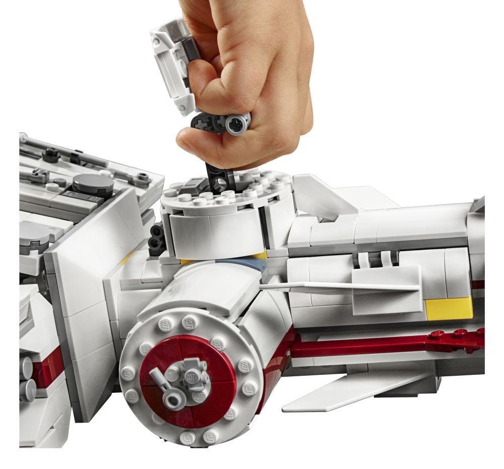 Wenn man an LEGO und „Star Wars“ denkt, dann kommen einem im ersten Moment natürlich die spektakulären Modelle vom Todesstern und dem Millennium Falken in den Sinn. Deshalb ist es schon eine kleine Überraschung, dass sich die LEGO-Designer im Jubiläumsjahr 2019 ausgerechnet für die weniger namhafte Tantive IV als größtes neues Modell entschieden haben. Auf der anderen Seite passt es natürlich, aus diesem Anlass zum ersten jemals auf der Kinoleinwand zu sehenden „Star War“-Schiff zurückzukehren. (Zumal das Design ursprünglich sogar für den Millennium Falken verwendet werden sollte, aber dann in einer Serie im US-Fernsehen ein zu ähnlich aussehendes Raumschiff aufgetaucht ist.)