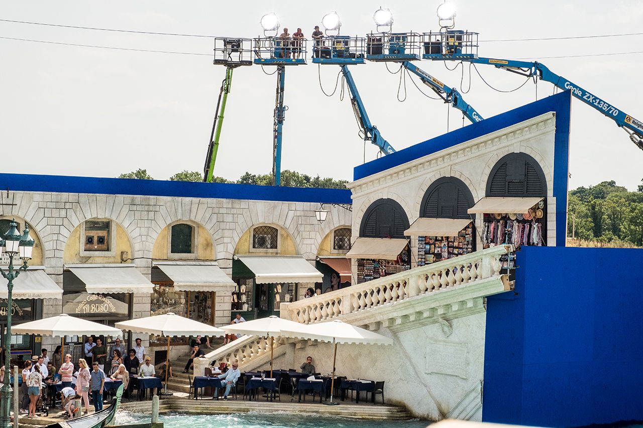 Auch für die Crew bietet der Dreh in den Studios natürlich große Vorteile, hat man doch das ganze Equipment immer dabei. Man habe ihnen sogar massiv davon abgeraten, für zusätzliche Außendrehs nach Venedig zu gehen, verraten uns die Macher. Schließlich ist es in der Stadt, in der Autos nicht erlaubt sind, ein Albtraum, die Tonnen Material, die eine Filmcrew mit sich herumschleppt, zu transportieren. Doch trotzdem entstehen dort auch einige Szenen, schließlich soll auf der Leinwand alles perfekt aussehen.