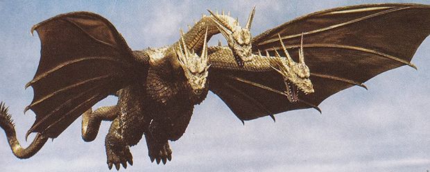 In einer alternativen „Godzilla“-Reihe reisen Menschen aus der Zukunft mit drei sogenannten Dorats, kleinen geflügelten Lebewesen, in das Jahr 1944. Nachdem sie auf der Insel Lagos durch Wasserstoffbombenversuche der Amerikaner verstrahlt werden, verschmelzen die Dorats miteinander und mutieren zum gefürchteten dreiköpfigen Ghidorah. Der goldene Drache ist meist so mächtig, dass Godzilla nicht allein gegen ihn ankommen kann. Neben seinen drei mit Zähnen und Stacheln gespickten Köpfen und gewaltigen Flügeln verfügt Ghidorah außerdem über zwei gehörnte Schwänze, die er als Waffen einzusetzen weiß. Ist er einmal in der Luft, kann Ghidorah mächtige Stürme erzeugen, in denen er sich fortbewegt. Zudem kann er aus allen drei Mäulern blitzähnliche Energiestrahlen abfeuern, denen kaum etwas gewachsen ist.