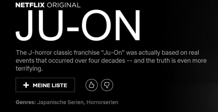 Sie trägt dort derzeit den einfachen Titel „Ju-On“ und wird folgendermaßen beschrieben: „Das klassische J-Horror-Franchise ‚Ju-On‘ basiert auf realen Ereignissen, die sich über vier Jahrzehnte hinweg zugetragen haben – und die Wahrheit ist sogar noch furchterregender.“