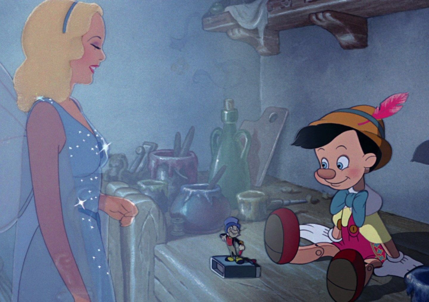 Darum geht’s: Als der kinderlose Tischler Gepetto als seinen sehnlichsten Wunsch äußert, dass seine neue Puppe namens Pinocchio ein echter Junge werde, sucht ihn des Nachts die Blaue Fee auf und haucht dem Holzgesellen Leben ein. Die Grille Jiminy wohnt dem Wunder zufällig bei und wird von der Fee dazu bestimmt, als Pinocchios Gewissen aufzutreten. Am nächsten Morgen wird dem gutmütigen Gepetto rasch klar, dass die lebendige Puppe als echter Junge auch die Schule besuchen muss. Dass ihm auf dem Schulweg hinterlistig ein Fuchs und ein Kater auflauern, die ihn an ein Marionettentheater verhökern wollen, ist nur der Anfang einer Reihe von gefahrvollen Abenteuern, die der frisch zum Leben erwachte Holzjunge durchstehen muss.