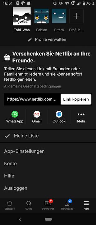 Geht in der App unten rechts auf „mehr“. Dann seht ihr:
