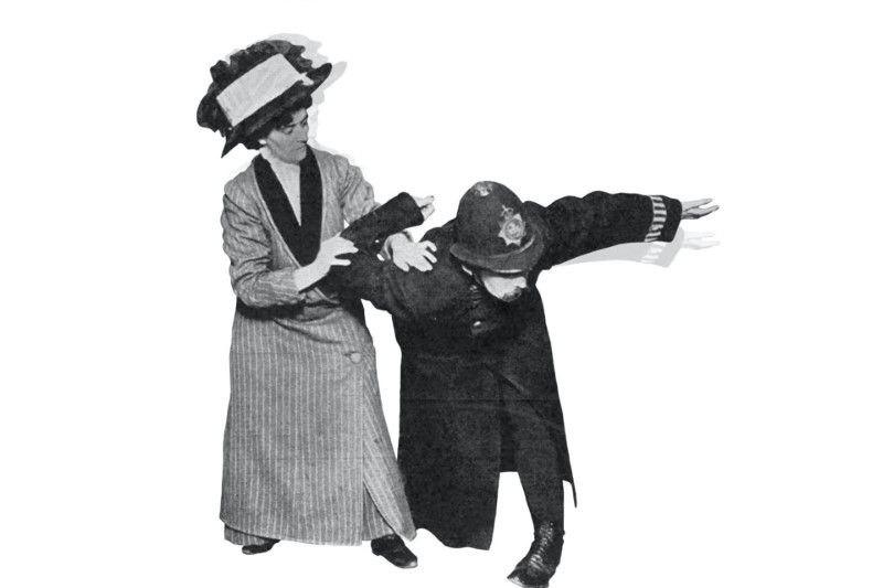 Die Polizei, zu dieser Zeit nicht gerade zimperlich und von dem weiblichen Aufbegehren wenig begeistert, ging oft mit körperlicher Härte gegen die Demonstrantinnen vor. Eine Suffragette namens Edith Garrud begann daraufhin, die Frauenrechtlerinnen in Jiu-Jitsu auszubilden, das erst wenige Jahre zuvor überhaupt von Japan noch Europa gelangt war. Die Bilder ihrer Techniken lassen sich heute im Internet finden.
