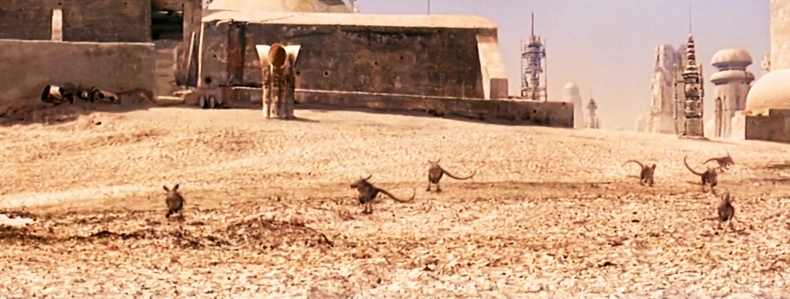 Diese drolligen kleinen Kreaturen irgendwo zwischen Erdmännchen und Karnickel sind auf dem Wüstenplaneten Tatooine beheimatet und kommen in „The Mandalorian“ wieder vor, nachdem sie von George Lucas nachträglich und sehr zum Ärger vieler Fans in „Star Wars 4: Eine neue Hoffnung“ eingebaut wurden – in der umstrittenen Special Edition (1997) nämlich.