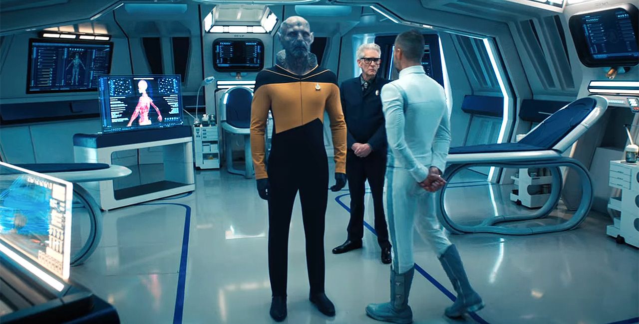 So erzählt er Dr. Culber (Wilson Cruz) vom verstorbenen Sternenflotten-Offizier Yor, der im sogenannten Temporalen Krieg aktiv war, auf den in „Discovery“ schon mehrfach verwiesen wurde (und der bereits in der Vorgängerserie „Star Trek: Enterprise“ eine größere Rolle spielte).
