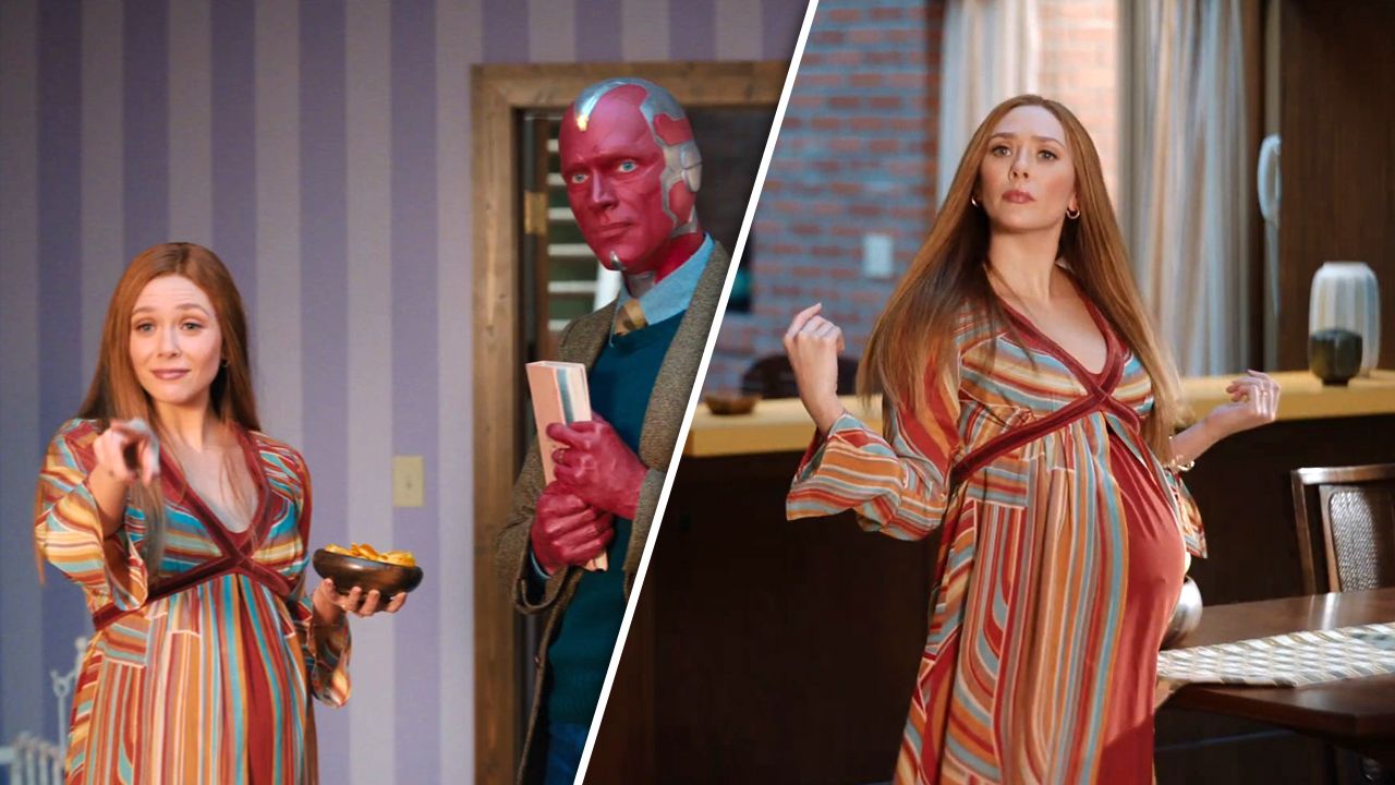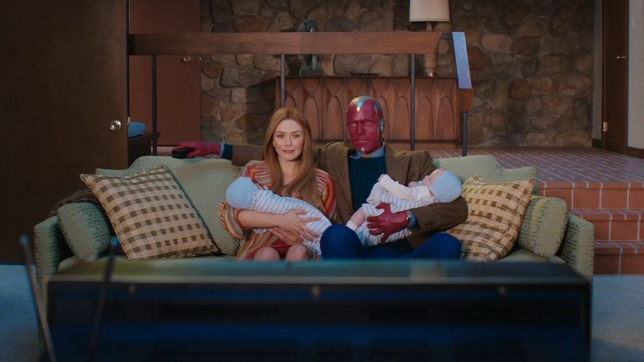 Mindestens eine Trailer-Szene (womöglich das Ende der Folge) zeigt nämlich Wanda und Vision in ihren 70er-Outfits auf der Couch, wobei sie jeweils ein Baby auf dem Arm haben.