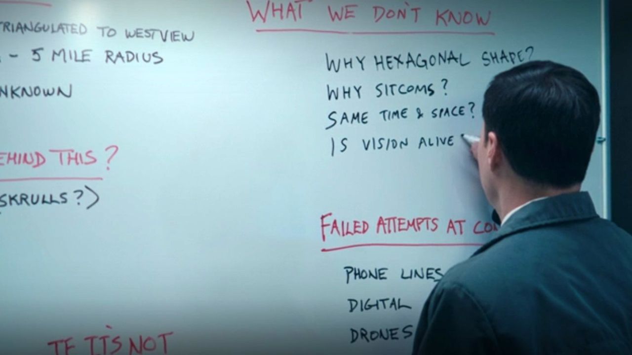 Warum die sechseckige Form (= Hexagon), die man am Ende der Episoden 1 und 2 sieht? Warum Sitcoms? Ist Vision am Leben und wenn ja: wie ist das möglich? Und stecken wirklich die Skrulls dahinter, also jene aus „Captain Marvel“ und „Spider-Man: Far From Home“ bekannten außerirdischen Gestaltwandler, wie das FBI vermutet?