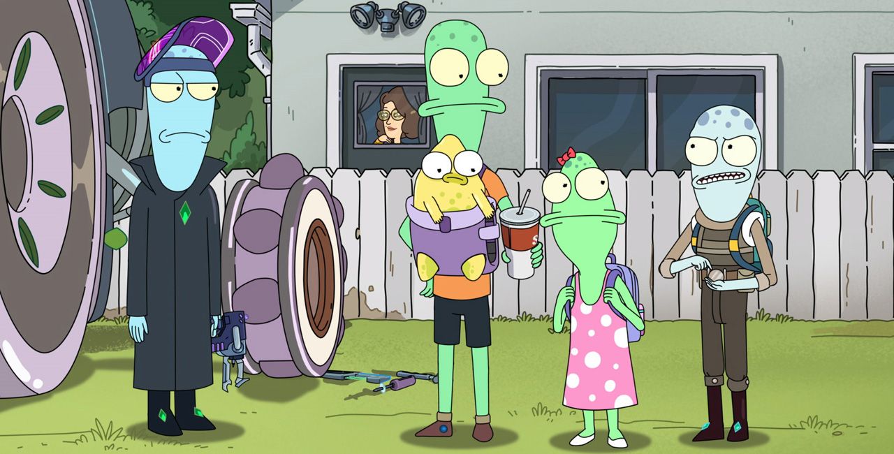 Justin Roiland: Es ist sehr anders als „Rick And Morty“, weil die Figuren ganz anders sind als Rick. Es gibt hier keinen Charakter, der super nihilistisch und düster ist. All diese Aliens sind sehr unbeschwert und naiv, das macht die Serie so schön absurd. Auf der anderen Seite haben wir mit der Geschichte in der Wand des Kinderzimmers [ein größerer Nebenhandlungsstrang, der sich durch die ganze Staffel zieht] auch hier eine finstere Komponente, diese ganze Energie ist dorthin geflossen.