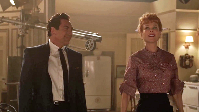 Ähnlich wie bei „Steve Jobs“ verdichtet Sorkin seine Geschichte und mit ihr viele Themen in einem klar abgesteckten Rahmen – in diesem Fall handelt es sich um den Produktionszeitraum einer einzelnen „I Love Lucy“-Folge in den 1950er Jahren, bei der die auch in Wahrheit verheirateten Stars Lucille Ball (Nicole Kidman) und Desi Arnaz (Javier Bardem) angesichts einer Schwangerschaft und aufsehenerregender Meldungen in der Presse mit noch mehr Herausforderungen zu kämpfen haben als ohnehin schon.