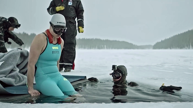 Atemlos wird es am Dienstag mit der Dokumentation „Atem anhalten: Die Eistaucherin“ über Freitaucherin Johanna Nordblad, die versucht, den Weltrekord für die mit einem Atemzug zurückgelegte Strecke unter dem Eis zu brechen.