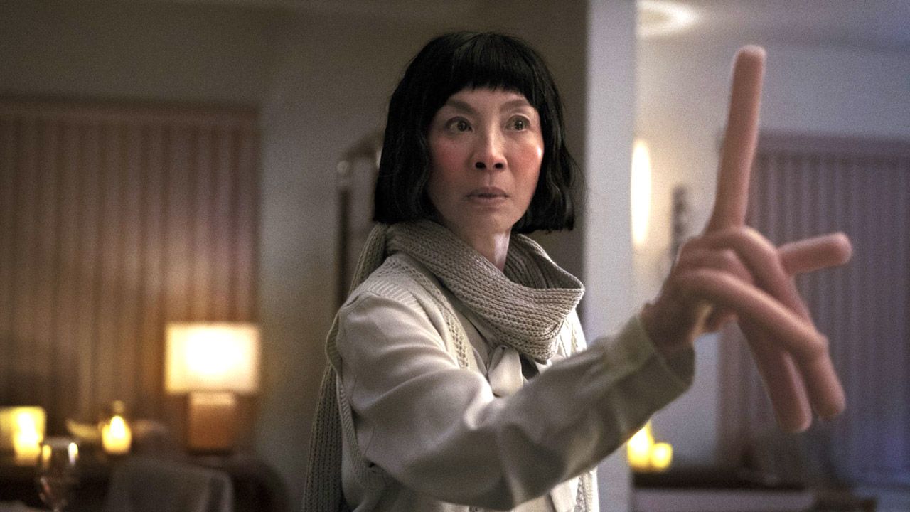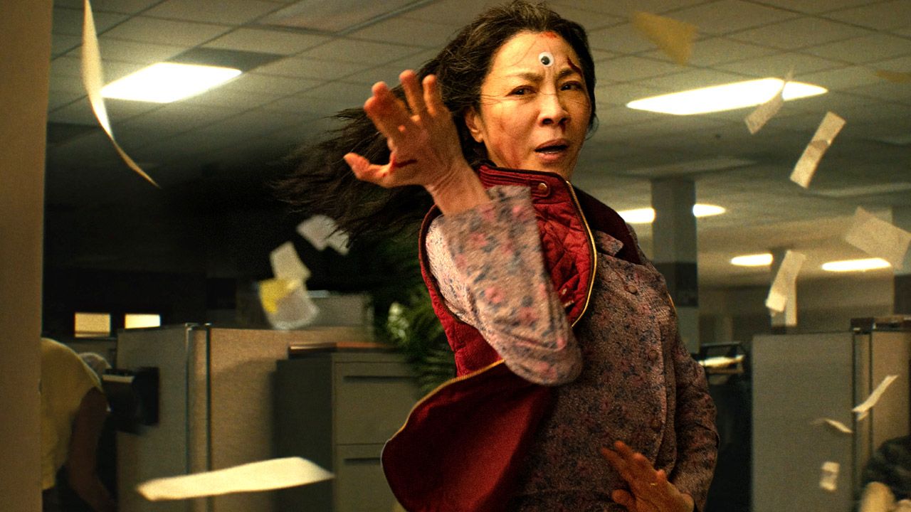 In „Everything Everywhere All At Once“ geht es um die Besitzerin eines Waschsalons namens Evelyn (Michelle Yeoh), der gerade alles über den Kopf wächst. Denn neben ihren normalen Arbeitsalltag hat sie Probleme mit der Steuerbehörde und muss nebenbei auch noch die Geburtstagsfeier ihres Vaters (James Hong) organisieren, der allerdings ein Problem damit hat, dass Evelyns Tochter Joy (Stephanie Hsu) lesbisch ist. Da bleibt nicht mal Zeit, um sich um die Scheidung zu kümmern, die Ehemann Waymond (Ke Huy Quan) eigentlich anstrebt.
