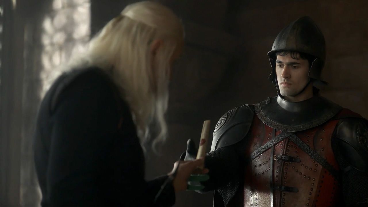 In einer Szene von Folge 3 ist König Viserys Targaryen (Paddy Considine) mit zwei grünen Fingern zu sehen. Was es damit auf sich hat? Considine trägt hier einen Handschuh mit zwei grünen Fingern, die dann eigentlich in der Postproduktion mit Hilfe von visuellen Effekten entfernt werden sollten. Denn wir erinnern uns: König Viserys‘ Verletzung an der Hand, die er sich am Eisernen Thron zugefügt hat, führte in Folge 2 dazu, dass ihm zwei Finger amputiert werden mussten (die Behandlung mit Maden brachte offenbar keinen Erfolg).