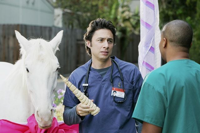 J.D.: „Should I get a baby too?“ Turk:“ I'm a little preoccupied right now. Why don't you ask your unicorn?“ J.D.: "Ah, this is way over Justin's head... he's never been in love. Not real love, anyway...“