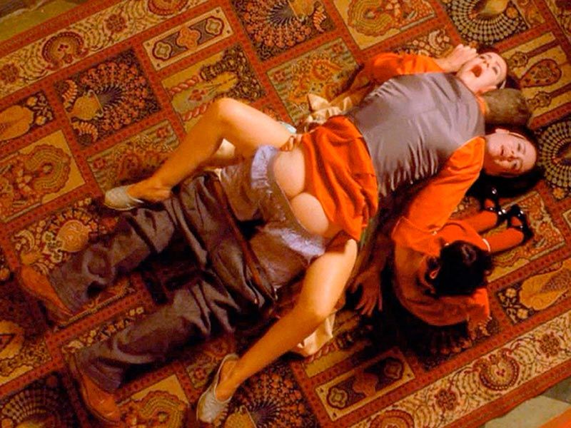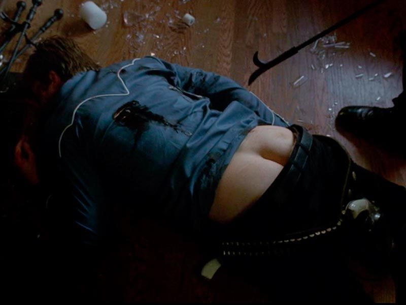 Bevor der Latex-Mann Patrick tötet, vergewaltigt er ihn erst noch anal mit dem Kaminbesteck.
