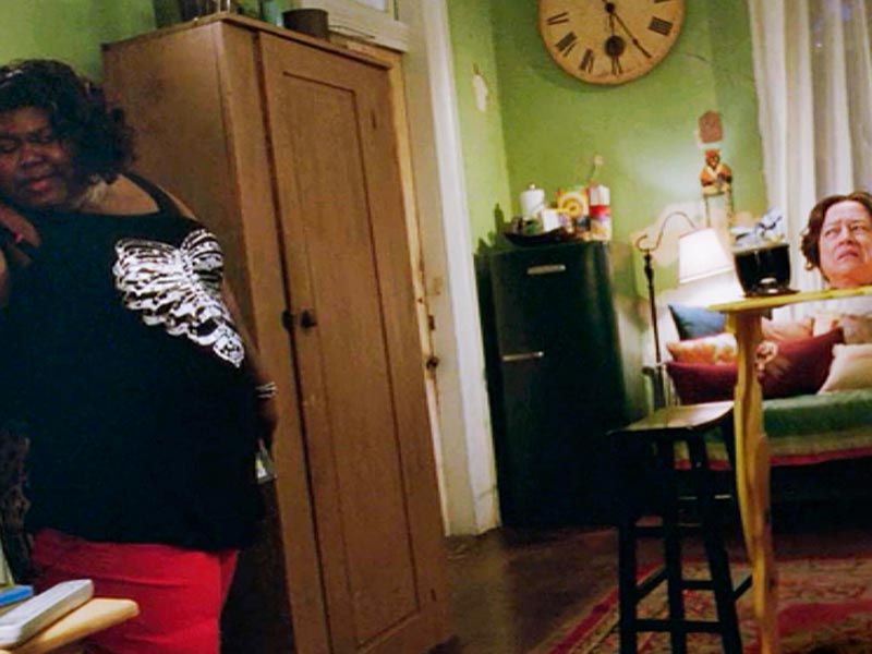 Constance (Jessica Lang) bestraft ihre Tochter Adelaide (Jamie Brewer), indem sie sie in einen Schrank voller Spiegel steckt, wo das am Down-Syndrom leidende Mädchen in völlige Panik ausbricht und Höllenqualen erleidet.
