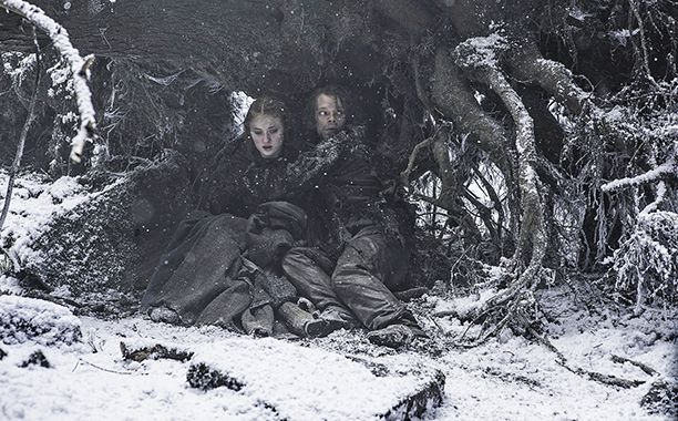 Theon (Alfie Allen) und Sansa (Sophie Turner) auf der Flucht