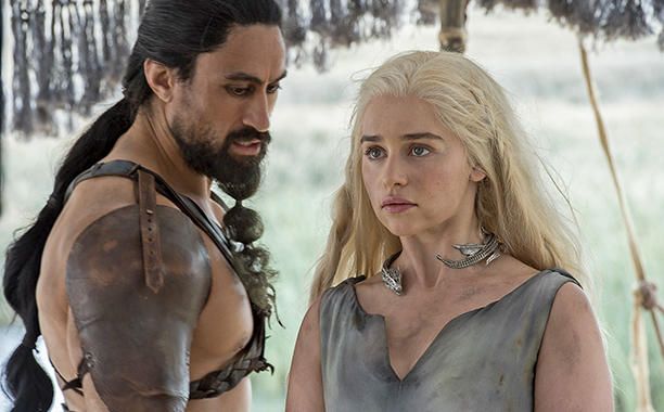 Drachen-Mutter Daenerys Targaryen (Emilia Clarke) und Dothraki-Führer Khal Moro (Joseph Naufahu)
