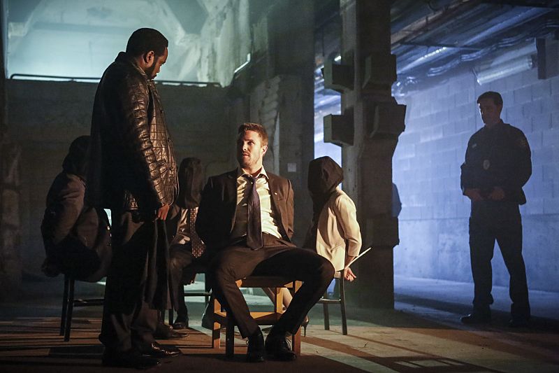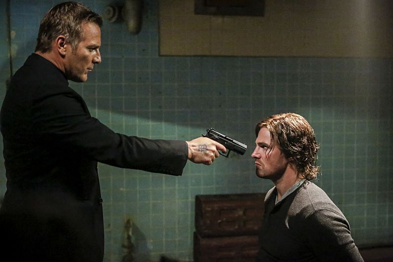 Auch in den obligatorischen Rückblenden gibt es neue Widersacher. Dieses Mal erfahren wir mehr über Oliver Queens Zeit in Russland. Wie wir bereits wissen, stieg er dort zu einem hochrangigen Mitglied der russischen Mafia auf. Auf den Bildern ist nun David Nykl als sein alter Verbündeter Anatoly Knyazev zu sehen. Mit Mike Dopud als Viktor gibt es aber auch einen neuen Gegner, der Oliver Queen mit einer Waffe bedroht.