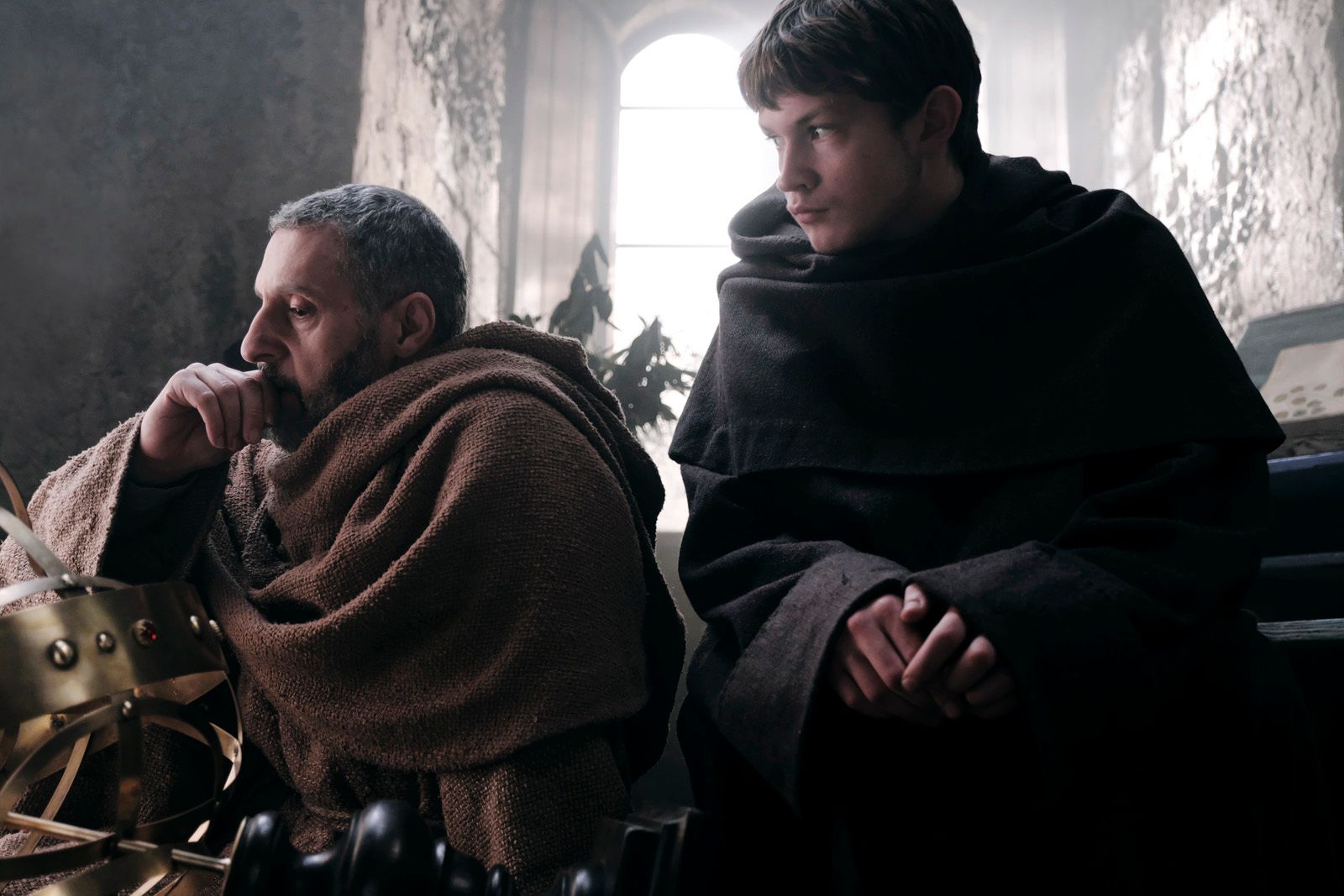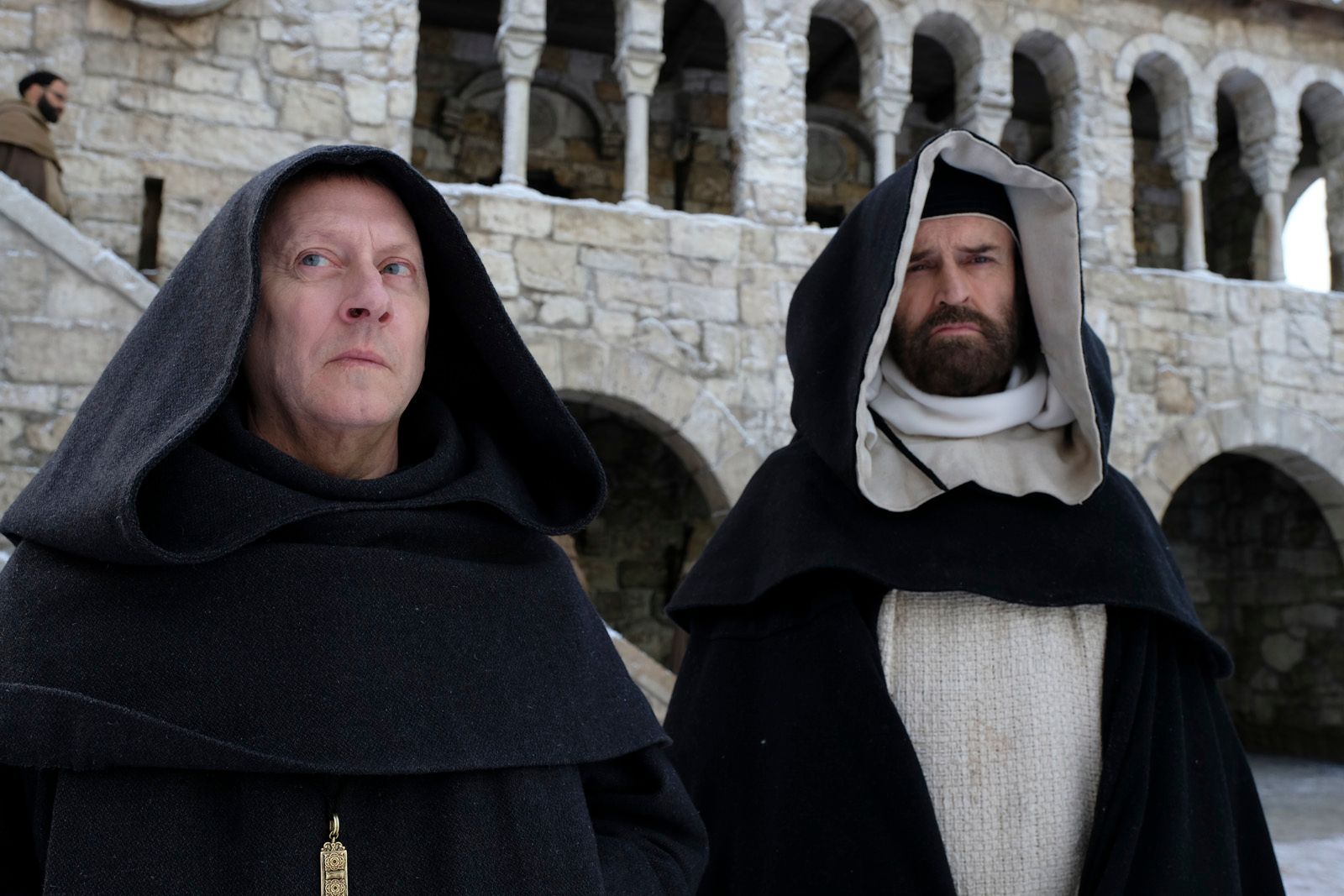 John Turturro (l.) und Damian Hardung (r.) als William von Baskerville und Adson von Melk in „Der Name der Rose“