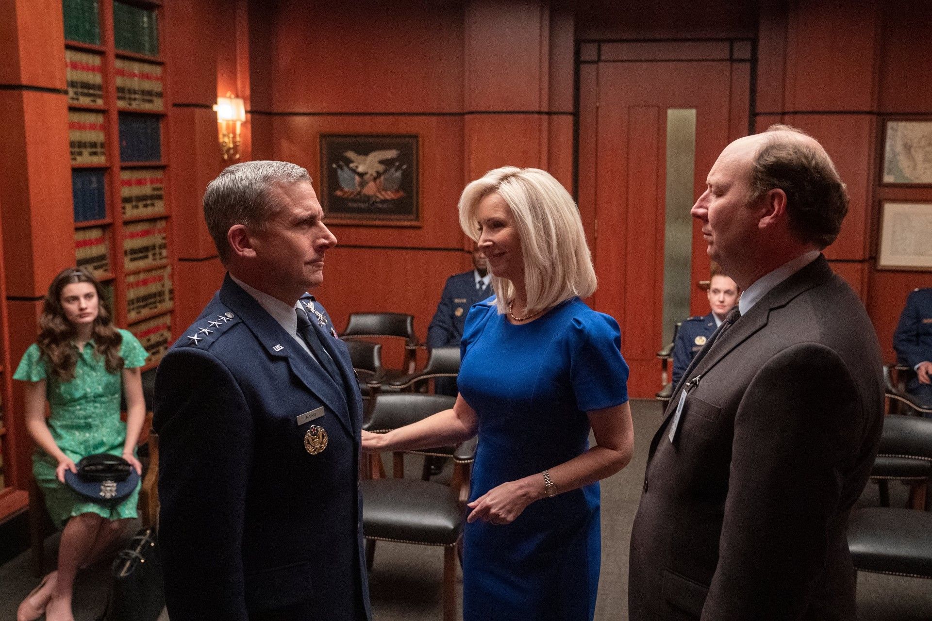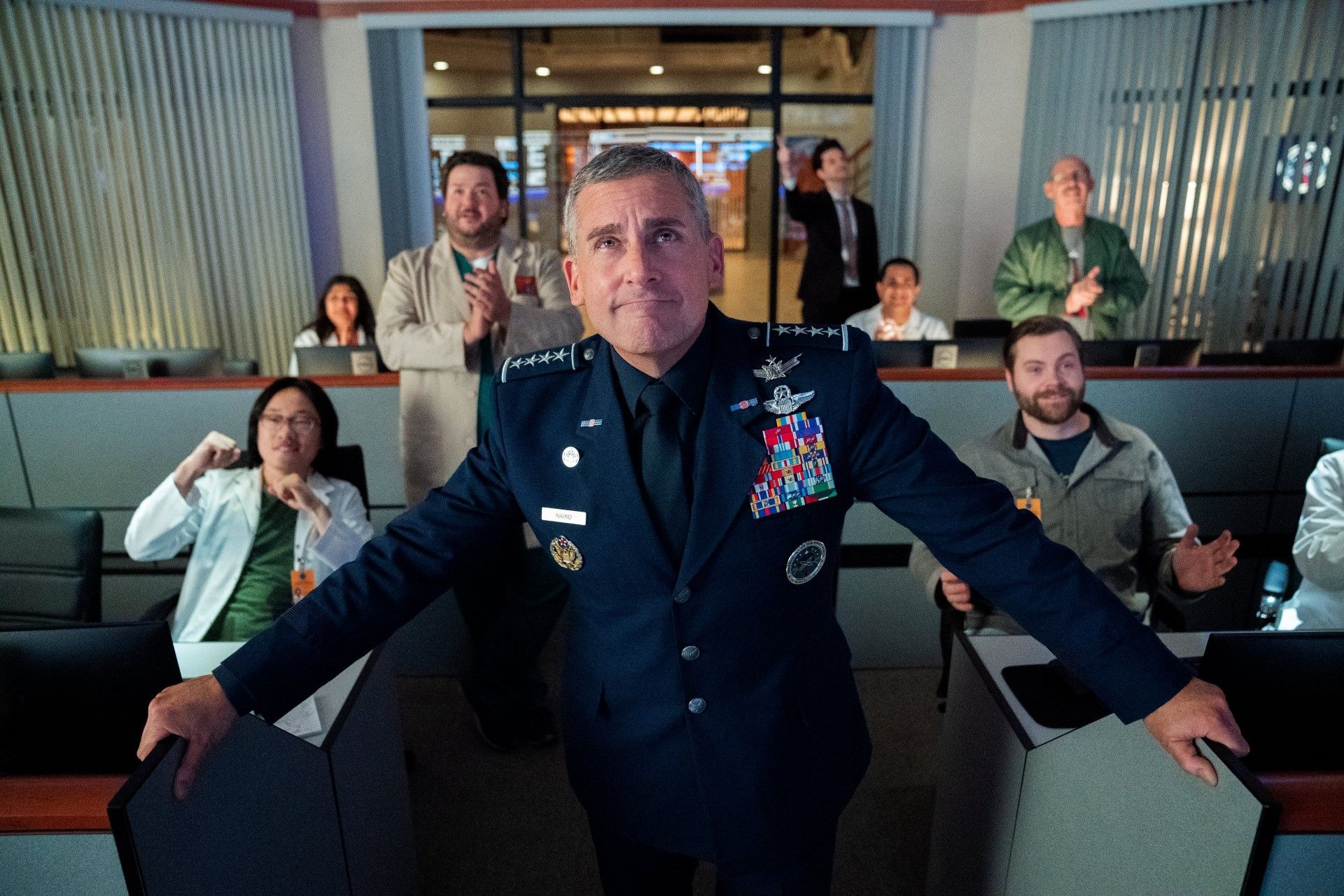 Im Mittelpunkt von „Space Force“ steht General Mark R. Naird (Carell), der sich bei der Schaffung der neuen Militärbehörde neben arroganten Wissenschaftlern und aalglatten Medienberatern auch mit seiner gelangweilten Tochter Erin (Diana Silvers) herumschlagen muss.