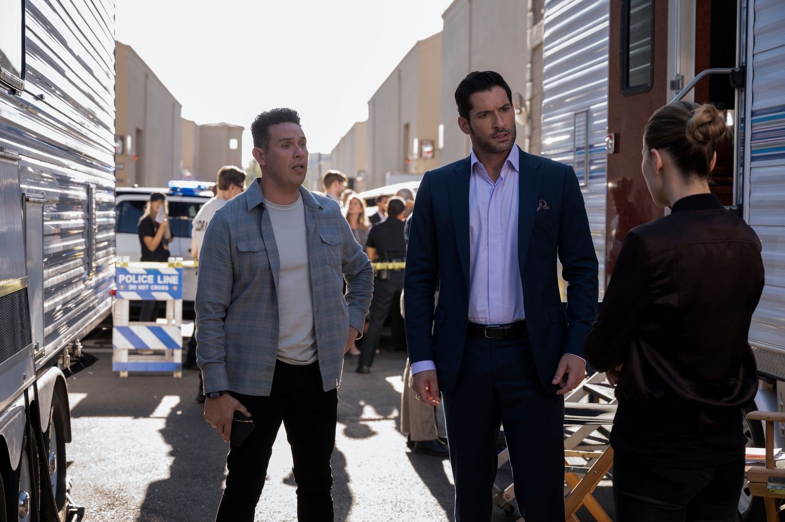 Daneben sehen wir auf den neuen Bildern natürlich noch einige andere bekannte Gesichter wie Lauren German als Detective Chloe Decker, D.B. Woodside als Amenadiel und Lesley-Ann Brandt als Maze.