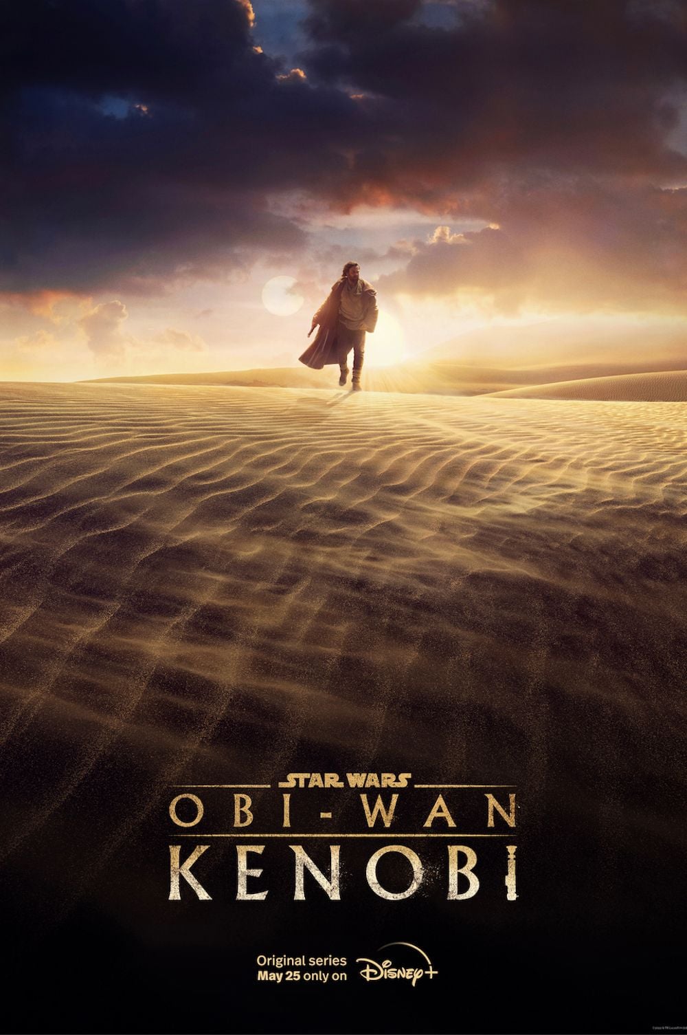 Ewan McGregor ist zurück im Wüstensand von Tatooine. Wie ein verzweifelter Wanderer auf der Suche nach einer Oase läuft er auf dem ersten Poster zu „Star Wars: Obi-Wan Kenobi“ durch die Einöde, im Hintergrund die Zwillingssonnen, womit der Tonfall gesetzt ist für diese neben „The Mandalorian“ Season 3 meisterwartete neue „Star Wars“-Serie:
