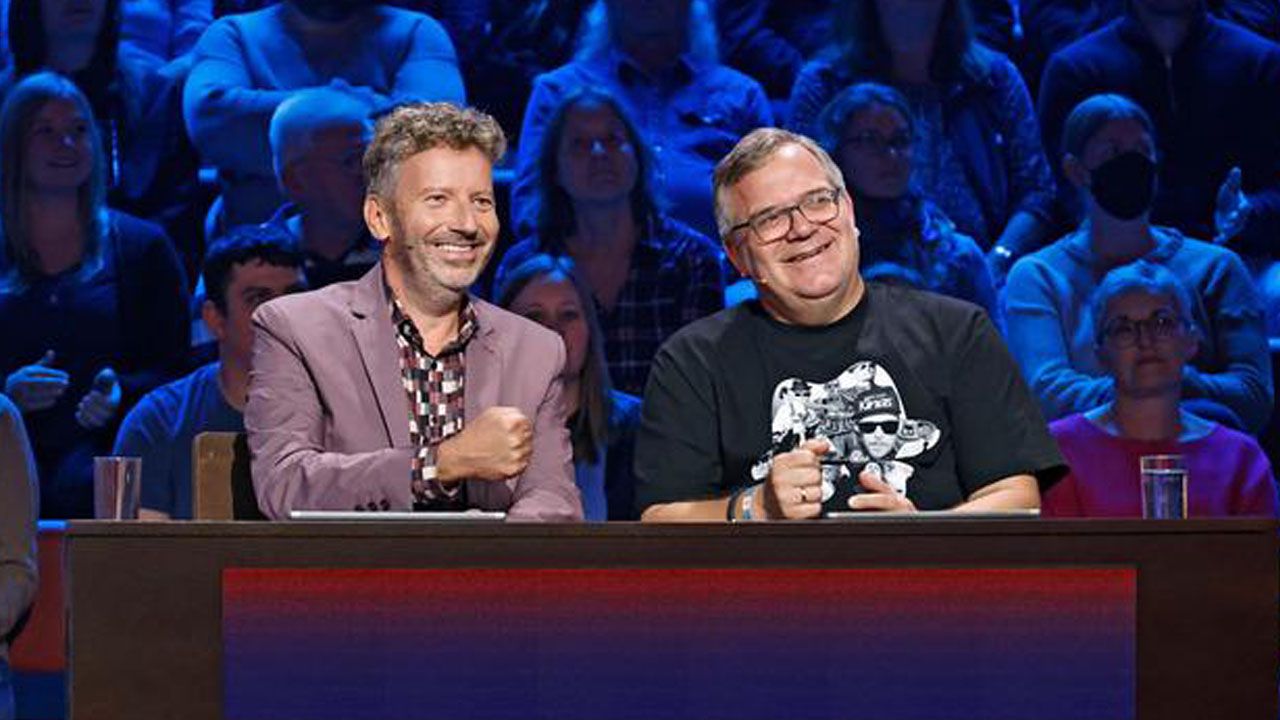 Die beiden Rätselmeister Bernhard Hoëcker und Elton stellen sich auch heute bei „Wer weiß denn sowas?“ den Fragen von Moderator Kai Pflaume. Sie spielen im Team mit jeweils einem prominenten Studiogast. Heute nehmen Radio- und Fernsehmoderator Thorsten Schorn und Sänger Isaak Guderian neben ihnen Platz.